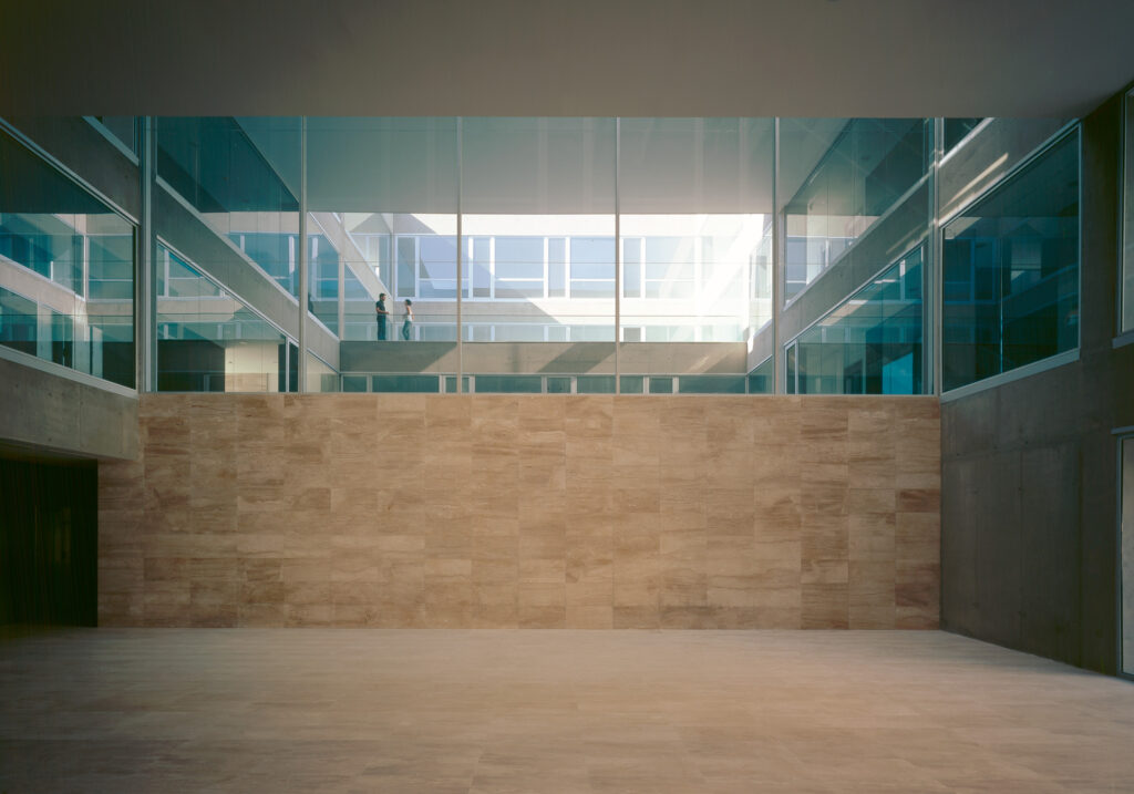 El proyecto, de vocación pública, ve mermada la posibilidad de imbricarse con la ciudad por la poca cualificación urbana del tejido donde se inserta, de ahí que el vacío interior no pretende ser tanto un espacio, en cuanto a su condición abstracta, sino un lugar, en la medida en que pretendemos que en él converjan las vivencias y se establezcan las relaciones de unos con otros. Se trata de crear un paisaje interior que procura suplir las carencias del contexto exterior.